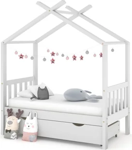 Łóżko dziecięce z szufladą białe sosna 70x140 cmTo wykonane z litego drewna łóżko dziecięce z szufladą jest praktycznym i dekoracyjnym dodatkiem do każdego pokoju dziecięcego. Drewniane łóżko dla dzieci jest wyposażone w ramę łóżka w stylu domku na drzewie, do której można przymocować zasłony. Dzięki temu łóżko może zapewnić dzieciom więcej prywatności. Dzięki pasującym akcesoriom może być również jako domek do zabawy. Wykonane z litego drewna sosnowego łóżko jest niezwykle stabilne i trwałe.