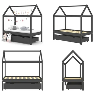 Łóżko dziecięce z szufladą ciemnoszare z litego drewna sosnowego 70x140 cmTo drewniane łóżko dziecięce z szufladą jest praktycznym i dekoracyjnym dodatkiem do każdego pokoju dziecięcego. Łóżko ma inteligentnie zaprojektowaną ramę w stylu domku na drzewie. Można na nim zawiesić zasłony, aby zapewnić dziecku prywatność. Łóżko może być również używane jako kącik do czytania lub domek do zabawy. Wykonana z litego drewna sosnowego rama łóżka jest niezwykle stabilna i trwała.