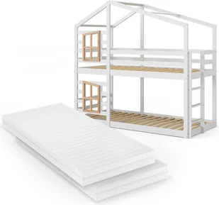 Odkryj eleganckie podwójne lózko pietrowe Vitalispa Maja w kolorze bialym. Dzieki solidnemu litemu drewnu lózko na poddaszu z drabinka oferuje miejsce dla 2 dzieci jednoczesnie - odpowiednie lózko dzieciece. Nowoczesne lózko pietrowe z oknem zapewniajacym atrakcyjna atmosfere, 2 wygodnymi materacami i praktyczna drabinka umozliwiajaca dostep do lózka na poddaszu - idealne podwójne lózko pietrowe do pokoju dzieciecego. WYMIARY: łóżko dla dzieci jest odpowiednie dla materaca 90x200 cm i ma wysokość 195 cm.