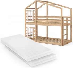 Łóżko piętrowe, 2x materace, Instrukcja montażu, Materiały montażowe Poznaj współczesną elegancję. Podwójne łóżko piętrowe zachwyca nowoczesnym designem i dwoma oknami, które nadają pomieszczeniu szczególny charakter. Doświadcz najwyższego poziomu komfortu. Podwójne łóżko piętrowe wyposażone jest w 2 ramy z listew i materace zapewniające komfortowy sen. Bezpieczeństwo jest priorytetem.