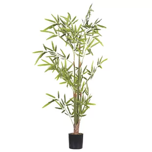 Dekoracyjny sztuczny bambus w doniczce Wprowadź nieco egzotyki do swoich wnętrz. Ten sztuczny bambus doniczkowy będzie wyglądać świetnie w salonie w stylu boho, w nowoczesnej kuchni, bądź w jadalni urządzonej w stylu skandynawskim. Bezproblemową pielęgnację i wygląd zapewniają syntetyczne gałązki i liście, jak również czarna doniczka obciążona cementem i udekorowana naturalnym mchem. Szczegóły: Kolor: Zielony, Czarny. Materiał: Materiał syntetyczny.