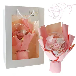 Bukiet zapachowych kwiatów mydlanych w torebce na prezent, kula, świecące LED - BUK14R