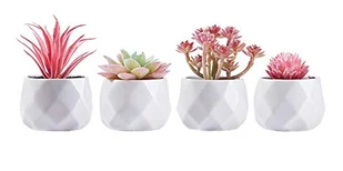 CADNLY Mała sztuczna roślina na biurko, różowa dekoracja biurka dla kobiet, sztuczne sukulenty, sztuczne sukulenty w białych ceramicznych doniczkach, mini różowa dekoracja do sypialni, łazienki,