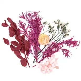 Wymiary opakowania: 10 x 15 cmMateriał: naturalne suszone roślinyKolor: bordowy, różwy, biały