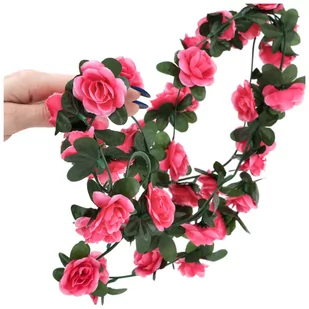 Girlanda z kwiatów dekoracyjna. Składa się z pnącza w kolorze ciemnej zieleni. Ma gęsto ułożone główki kwiatów w kolorze amarantowym. Całość uzupełniona list...