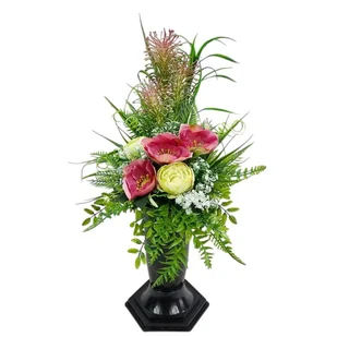 MALWY TRAWY różowe (950.20) Bukiet we wkładzie na cmentarz MALWY TRAWY różowe (950.20) Bukiet we wkładzie na cmentarz Bardzo efektowny bukiet na cmentarz z c...