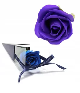 PACHNĄCA RÓŻA MYDLANA 40cm NA prezent w pudełku NIEBIESKA walentynki kobiet