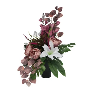 Stroik dekorowany w wazonie lilie, piwonie, gladiole