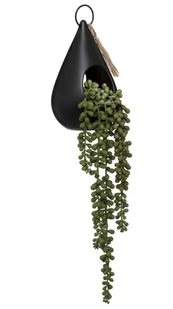 Efektowna zwisająca roślina, która ożywi każde wnętrze wprowadzając niepowtarzalny nastrój. Umieszczona jest w ceramicznej, czarnej osłonce, która stanowi dodatkową ozdobę. Kwiat został wykonany z tworzywa sztucznego wysokiej jakości. Do złudzenia przypomina naturalne okazy, jednak w przeciwieństwie do nich nie wymaga specjalnych zabiegów pielęgnacyjnych i będzie pięknie wyglądać cały rok. Oryginalny sposób na udekorowanie domu, tarasu czy balkonu.