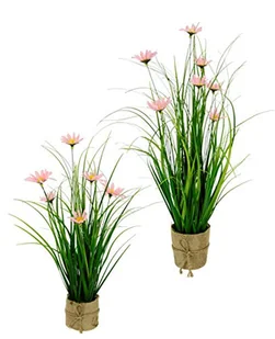 Sztuczna trawa z margerytami w doniczce z juty, kwiaty, trawa stojąca, wiązka trawy, sztuczna roślina, dekoracyjna, sztuczna trawa, sztuczna trawa, krzesiwo trawy, dekoracja