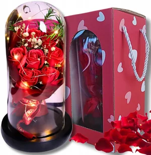 WIECZNA RÓŻA PIĘKNY BUKIET 7 RÓŻ W SZKLE ŚWIECĄCA LAMPA LED PREZENT