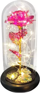 RÓŻOWA WIECZNA RÓŻA POD KLOSZEM ❤️Przepiękna róża, umieszczona na złotej łodydze , prezent idealny dla każdej kobiety, która uwielbia stylowe dodatki. Nie wymagają żadnej pielęgnacji. ❤️Róża została zamknięta pod szklanym kloszem, na eleganckiej, ciemnej drewnianej podstawie. ❤️Cały klosz został podświetlony lampkami led, które zostały umieszczone pod szkłem.