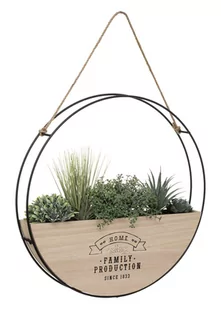 Efektowna kompozycja sztucznych kwiatów, która ozdobi każde wnętrze wprowadzając przyjemny nastrój. Rośliny zostały umieszczone w wiszącej osłonce, którą dodatkowo zdobi wytrzymały sznur. Osłonka wykonana jest z solidnej płyty MDF i została umieszczona w metalowej ramie. Kwiaty zostały wykonane z tworzywa sztucznego wysokiej jakości, do złudzenia przypominają naturalne okazy, jednak w przeciwieństwie do nich nie wymagają specjalnych zabiegów pielęgnacyjnych i będą pięknie wyglądać cały rok. Oryginalny sposób na udekorowanie domu, tarasu czy balkonu. Długość uchwytu: 20 cm