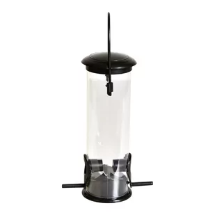 Essschert Design Silos na nasiona Ten silos na nasiona utrzymuje paszę suchą i chroni ją przed warunkami atmosferycznymi. Silos jest wyposażony w grzędę, dzięki czemu ptaki mogą łatwo dosięgnąć paszy. Cechy: Łatwy do napełniania, karma pozostaje sucha, w modnym czarnym kolorze. Ładny, mały plastikowy silos do dokarmiania ptaków zimą. Łatwe napełnianie dzięki pokrywie na wieszaku z 2 grzędamiHigieniczne karmienie, ponieważ żadne odchody nie mogą dostać się do pokarmuWymiary: