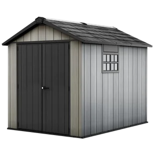 Praktyczny domek narzędziowy OAKLAND 759, wykonany jest z unikalnej kompozycji żywic, która tworzy w efekcie bardzo wysokiej jakości tworzywo, odporne na działanie niekorzystnych czynników zewnętrznych. Domek pomieści nie tylko narzędzia i akcesoria ogrodowe, ale także kosiarkę czy drabinę. Jego główne zalety to stabilna, wzmocniona stalowa konstrukcja, solidny dach oraz szerokie, dwuskrzydłowe drzwi. Głównym atutem tego produktu jest możliwość jego pomalowania, zgodnie z indywidualnymi preferencjami kolorystycznymi.