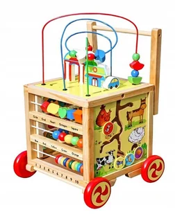 PCHACZ 6 W 1 Zegar - odczytywanie godzin Pętla motoryczna - wsparcie ogólnego rozwoju dziecka, po jej zdjęciu zyskujesz schowek na zabawki Labirynt ze zwierz...