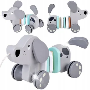 Drewniany Piesek - Zabawka do ciągnięcia na sznurku Szary pies ZA5376