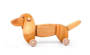 Kto tutaj się kręci? To jamniczek. Ma koła, jest długi, jeździ i skręca. Co jeszcze potrafi ? Gdy jedzie, rusza uszami ,a one podskakują i stukają. Jamniczek...