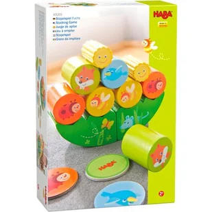 HABA 305203 – Stacking Game Fox, Stacking and Motor Skills Game Made of Wood with Wobble Meadow and 10 Stacking Stones for Free Playing or Playing According to Instructions Wooden Toy from 2 Years