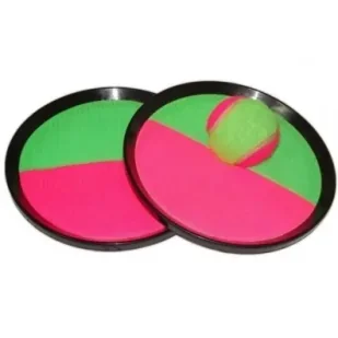 Odkryj fantastyczną zabawę na świeżym powietrzu z naszym zestawem do rzucania i łapania piłki na rzepy! Ten prosty, a zarazem wciągający zestaw składa się z dwóch okrągłych paletek o średnicy około 20 cm każda, pokrytych z jednej strony kolorowym materiałem z rzepem (połowa paletki jest zielona, a połowa różowa). W zestawie znajduje się również jedna piłeczka. Zasady gry są niezwykle proste: jeden gracz rzuca piłeczkę, a drugi próbuje ją złapać, przyciskając do swojej paletki. Dzięki powierzchni z rzepem piłeczka łatwo przyczepia się do paletki, zapewniając mnóstwo frajdy i satysfakcji z udanego chwytu.