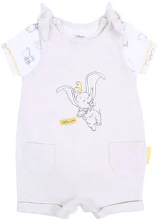 Komplet składający się z body i ramperu z motywem słonika Dumbo. Beżowy rampers z dwoma kieszonkami z przodu i z tyłu, w kroku zapinany na zatrzaski. Białe b...