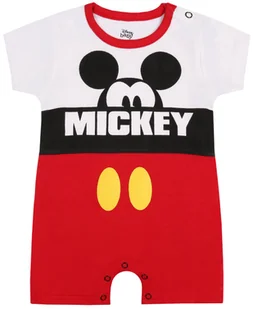 Chłopięcy, biało-czerwony rampers, z przodu z wizerunkiem Myszki Mickey. Na ramieniu oraz w kroku zapinany na zatrzaski, dzięki czemu łatwo zmienisz pieluszk...
