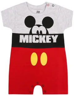 Chłopięcy, szaro-czerwony rampers, z przodu z wizerunkiem Myszki Mickey. Na ramieniu oraz w kroku zapinany na zatrzaski, dzięki czemu łatwo zmienisz pieluszk...
