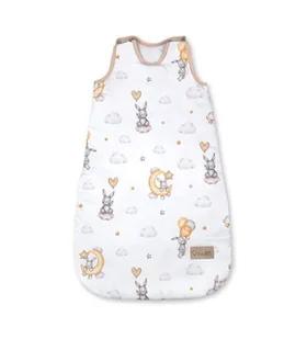 Śpiworek do spania wykonany jest z wysokogatunkowej bawełny 100%. Śpiworek z jednaj strony ma nadruk króliczka, a z drugiej jednokolorową bawełnę w kolorze n...