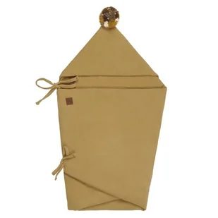 Hi Little One kocyk/otulacz z kapturem do fotelika samochodowego ALPACA BOHO Mustard Pom Pom