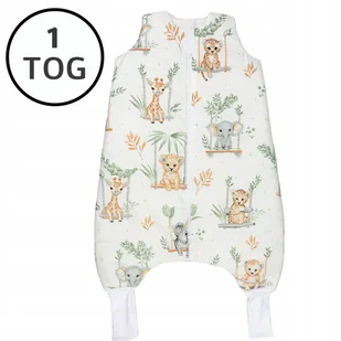 Śpiworek z bawełniany z nogawkami (Ocieplany) Rozmiar 56-68cm Wzór: Zwierzęta na Huśtawkach Zielone Odpowiedni w przedziale wiekowym: 6-12 miesięcy Śpiworek ...