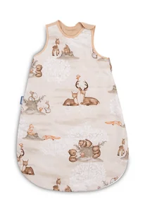 Śpiworek do spania w rozmiarze M będzie służył nieco starszym dzieciom (9-18 miesięcy) zapewniając im ciepło i bezpieczeństwo. Uszyty jest z miękkiej bawełny wypełnionej otuliną. Wnętrze i tył śpiworka są wykonane z bawełny muślinowej. Produkt nie zawiera twardych elementów, które mogłyby podrażnić skórę dziecka. Wyposażony jest w dwustronny zamek błyskawiczny, poprowadzony wokół śpiworka, pozwalający na zmianę pieluchy bez wyciągania dziecka ze śpiworka.