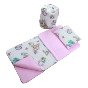 Śpiworek do przedszkola Syrenka – Różowa bawełna to komfortowy, antyalergiczny komplet do spania dla małej księżniczki. Miękka 100% bawełna, piękny motyw syrenki i w zestawie poduszka oraz worek sprawiają, że to idealny śpiworek dziecięcy do przedszkola, domu i podróży.