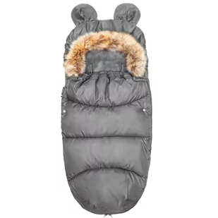 45 cm Długość śpiworka po maksymalnym rozpięciu: ok. 166 cm Dodatkowe informacje: Syntetyczny materiał/syntetyczne wypełnienie – nie powodujące alergii Kaptur nie jest odpinany, bez ściągaczy Odpinany futrzany kołnierzyk – przypinany do kaptura na czarne guziczki Kolor części zewnętrznej: odcień szarości Kolor części wewnętrznej: odcień szarości Kolor kołnierzyka/futerka: