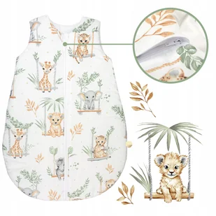 ŚPIWOREK NIEMOWLĘCY DO SPANIA ZE 100% BAWEŁNY Całoroczny Wzór: Zwierzęta Na Huśtawkach Zielone Rozmiar: 80-86 cm Grubość: 2,5 TOG Śpiworek całoroczny dla nie...