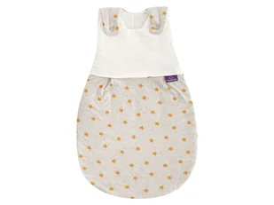 - śpiworek do spania dla niemowląt z motywem gwiazdek w kolorze musztardowo-żółtym