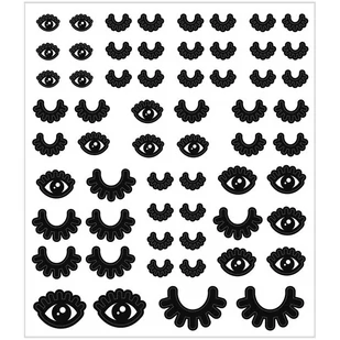 oczy są w 2 wzorach (zamknięte i otwarte) oraz w 4 rozmiarach, łącznie 60 sztuk