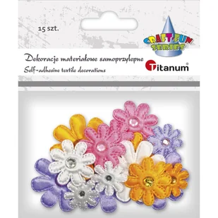 Aplikacje materiałowe samoprzylepne, wzór: kwiatki z kryształkiem. 15 sztuk.