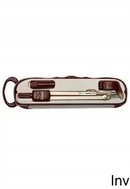 Metalowy cyrkiel techniczny typu 200 z wymienną końcówką, uniwersalną końcówką do rapidografów, ołówków etc. i zapasem grafitów, produkcja LORENZ Włochy.