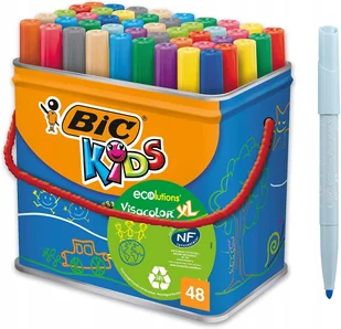 Mazaki BIC w puszce metalowej 48 sztuk Pudełko lekko obite podczas magazynowania - lekko się chybocze. Te cienkie filcowe końcówki to idealne pisaki dla dzie...