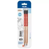 MILAN Blister 2 ołówki grafitowe HB MAXI z gumą + 1 temperówka MAXI