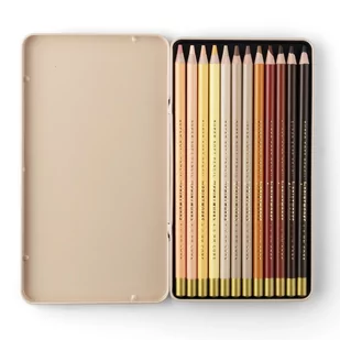 Zestaw 12 starannie dobranych kredek w odcieniach skóry i estetycznym metalowym opakowaniu. Zaprojektowane i wyprodukowane przez PRINTWORKS.
