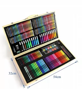 Zestaw Artystyczny do Malowania Rysowania Dla Dzieci Drewniana Walizka PRO ⭐️Zachwycająca różnorodność aż 180 elementów Każdy element zestawu artystycznego z...