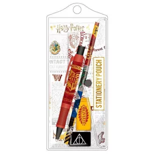 Zestaw przyborów szkolnych, wykonany na pełnej licencji marki Harry Potter. W jego skład wchodzą: długopis, ołówek, linijka, gumka oraz temperówka. Całość zo...