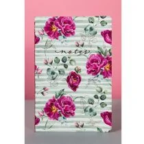 Romantyczna kolekcja notesów. Okładka notesu z pastelową ilustracją kwiatową oraz subtelnie tłoczone złotą folią elementy grafiki i napisy, tworzą piękną kompozycję graficzną. Lniana tekstura okładki oraz kolor nici, pierwszej i ostatniej strony notesu uzupełniają stylowy wygląd notesu. Strony. . .