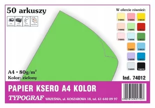 PAPIER KSERO TYPOGRAF A4 80G ZIELONY - Format: A4.