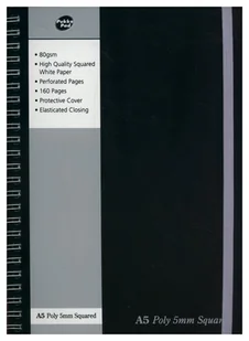kołozeszyt w kratkę format: A5 polipropylenowa okładka elastyczne zamknięcie wewnątrz mapa świata oraz strona na dane osobowe szara liniatura brak marginesów perforacja ułatwiająca wyrywanie stron gramatura 80 g/m2 liczba stron: