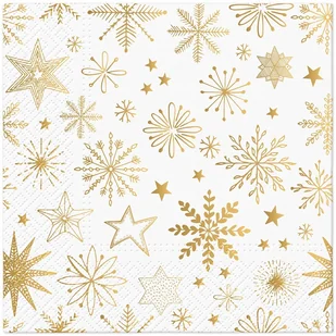 Serwetki świąteczne bibułowe 3 warstwowe z nadrukiem śnieżynek, 33x33 cm