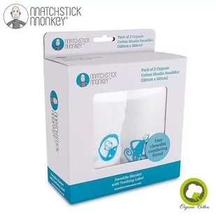 Matchstick Monkey, Otulacz z gryzakiem, bawełniany, Niebieskie Małpki, 120x120 cm, 2 szt.