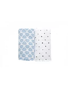Otulacze muślinowe bawełniane Premium 100x120cm Statki Niebieskie