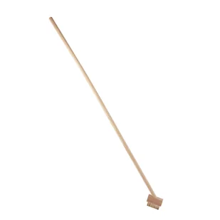 Szczotka do czyszczenia fug kostki brukowej, z trzonkiem, LUX-TOOLS. Posiada część roboczą wykonaną ze stalowego, mosiądzowanego drutu, ułożonego pod kątem (w kształcie litery V) i osadzonego w oprawce z drewna bukowego. Narzędzie przeznaczone jest do usuwania chwastów, trawy i mchu ze szczelin między płytkami chodnikowymi oraz przy krawężnikach, murkach i innych ozdobnych elementach ogrodowych. Wyposażone jest w trzonek o długości 140 cm z drewna bukowego.